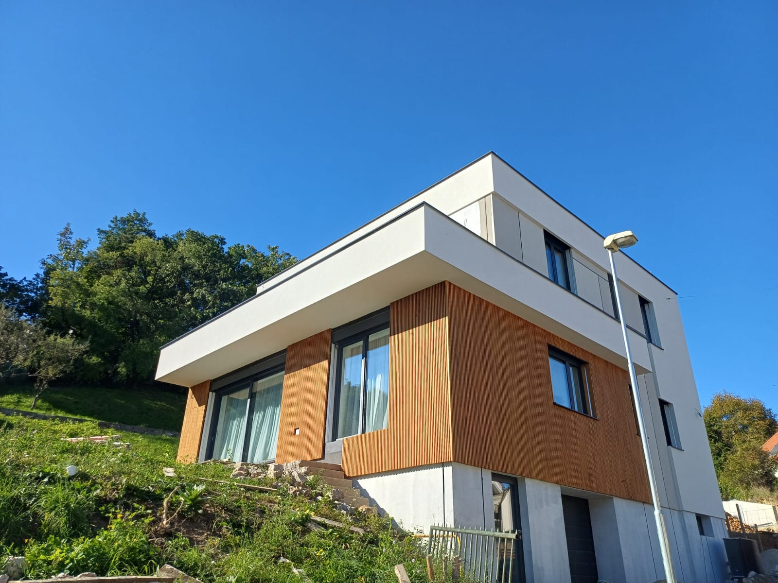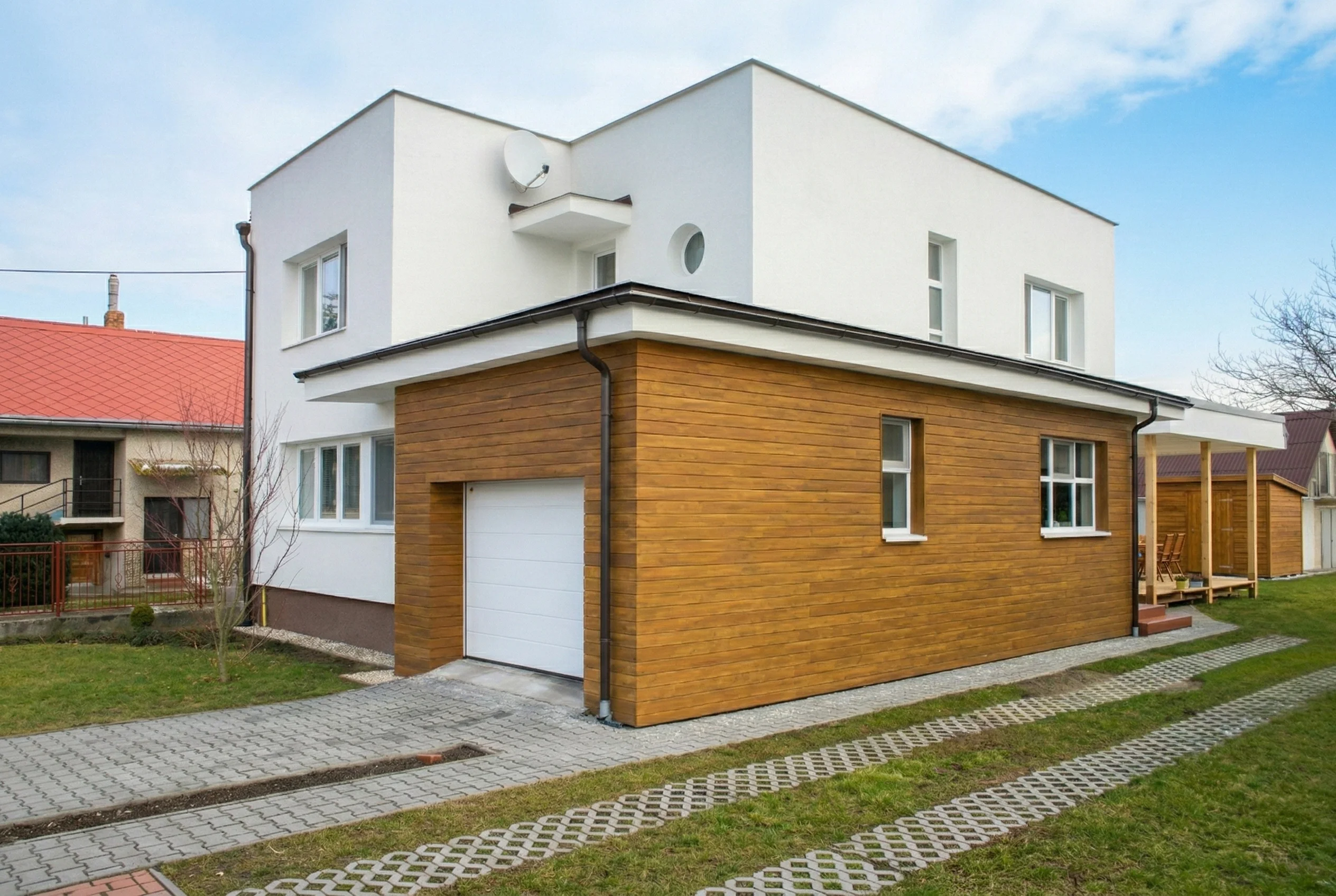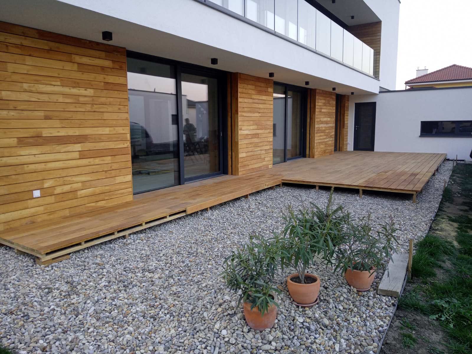 Moderní přírodní fasáda z akátu