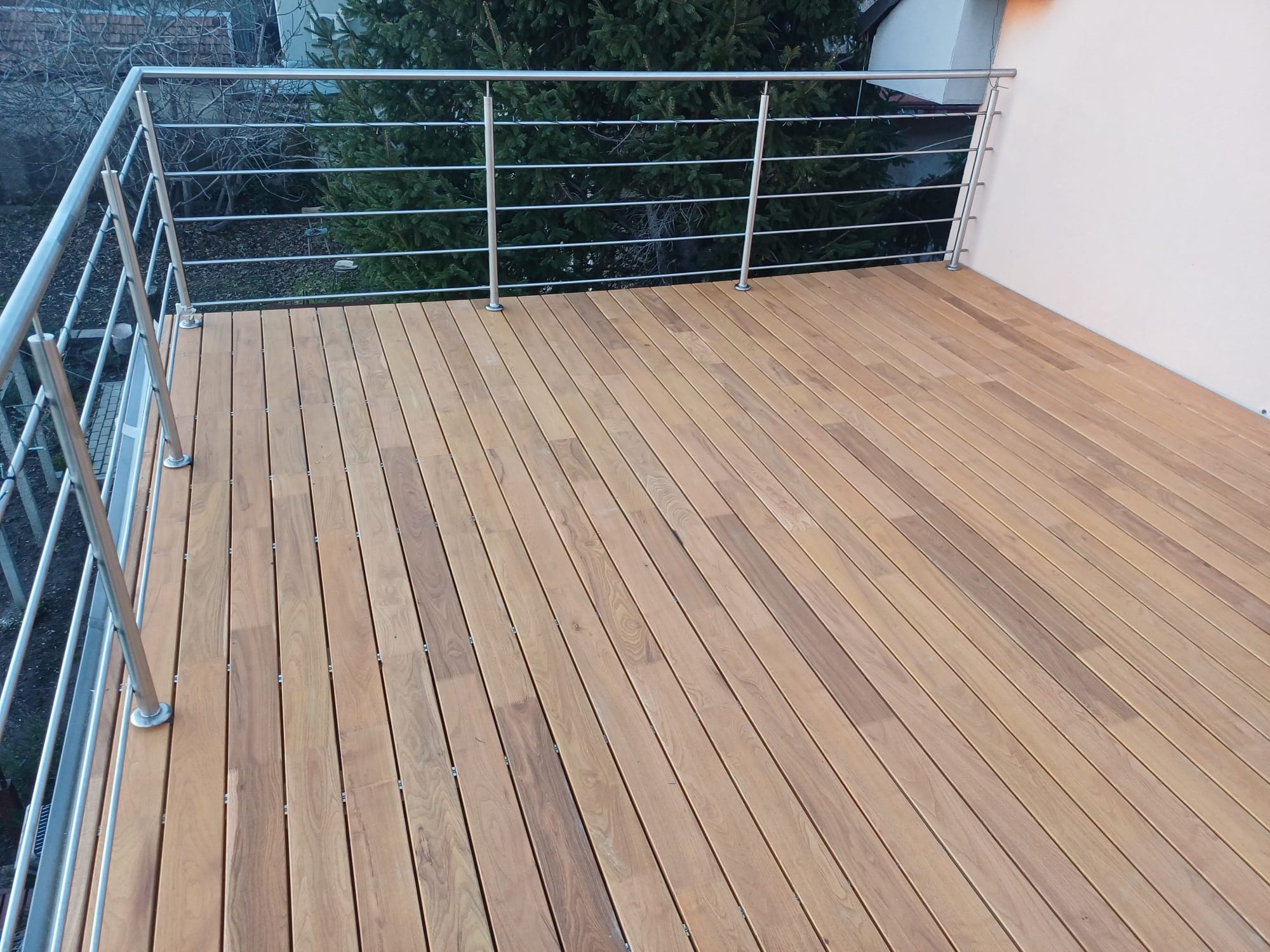 Nabízíme kvalitní nerezové prvky dle vámi preferovaného designu – na výběr máte moderní neviditelné upínání (v mezerách mezi prkny), nebo klasické upínání pomocí nerezových šroubů svrchu.